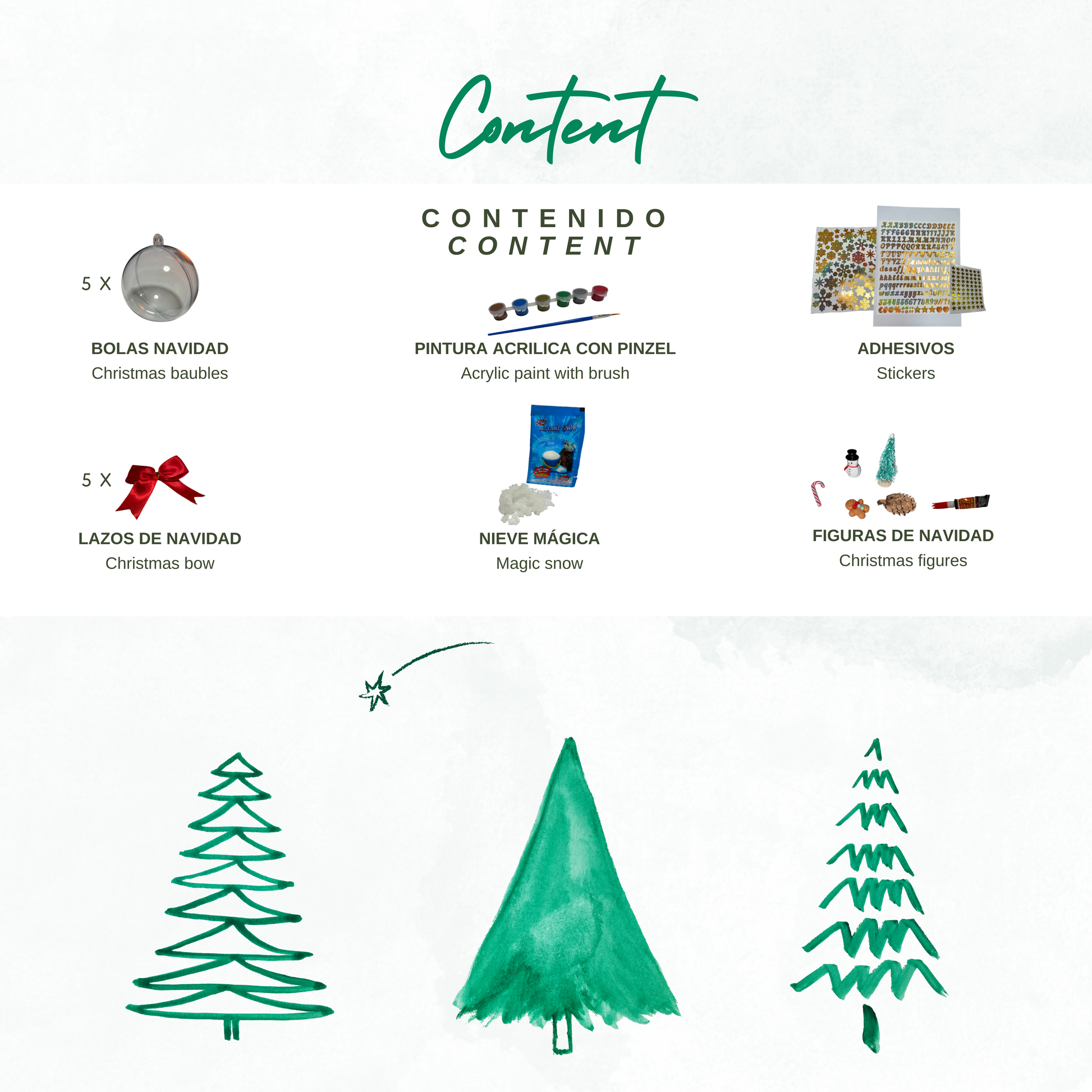Me ha encantado el kit. Viene súper completo y listo para usar: bolas transparentes, pinturas, pegatinas doradas, nieve mágica y un montón de detalles que hacen que decorar sea facilísimo y muy divertido. El packaging es precioso, perfecto incluso para regalar.